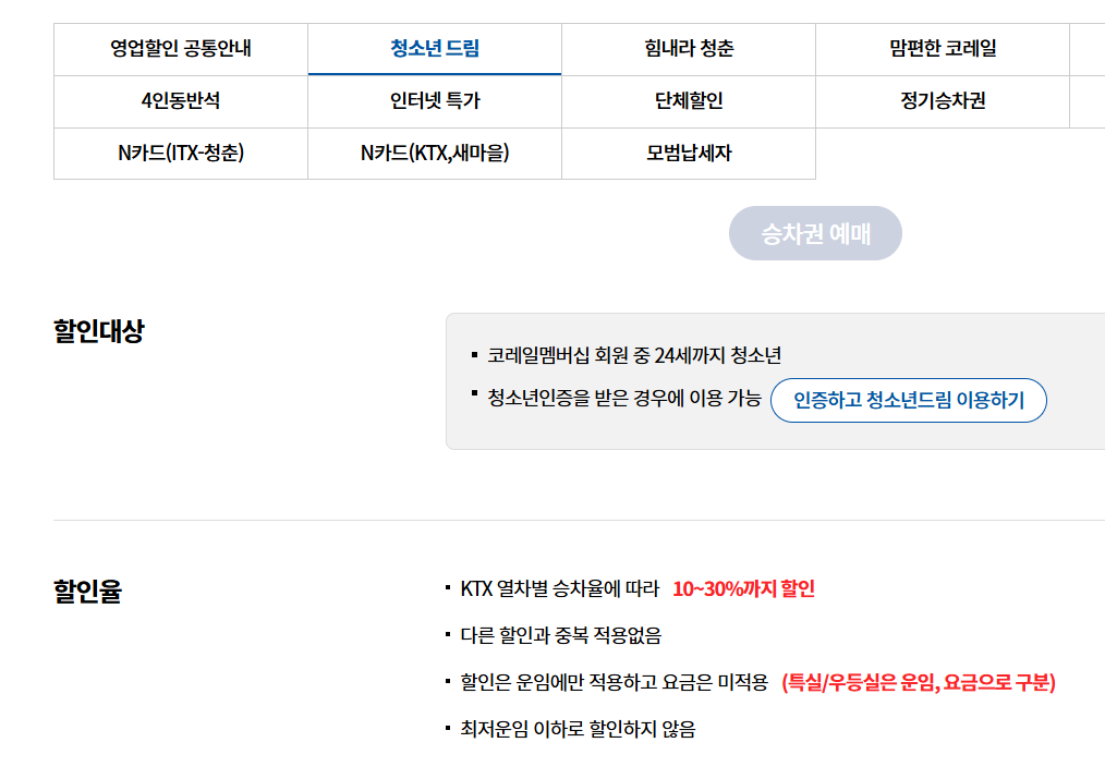 기본적으로 KTX 할인은 연령별, 시간대별, 사전예약 여부에 따라 나뉘는데요. 학생, 청소년, 경로자 할인은 상시 제공되며, 조기 예매나 비인기 시간대 이용 시 자동으로 할인이 적용되기도 해요.