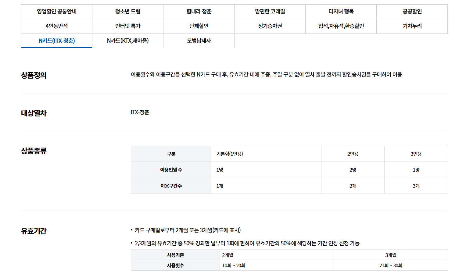 | 역방향 좌석 | 최대 30% 할인 |