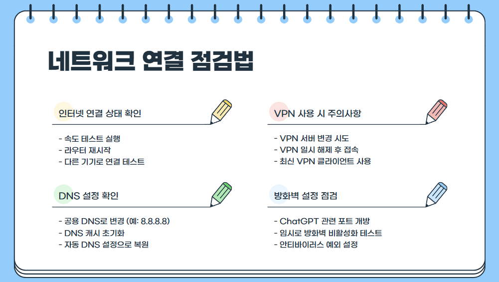 ChatGPT 오류는 대부분 다음의 4가지 원인에서 시작돼요. 하나씩 체크해보면 문제 해결이 쉬워질 수 있어요.